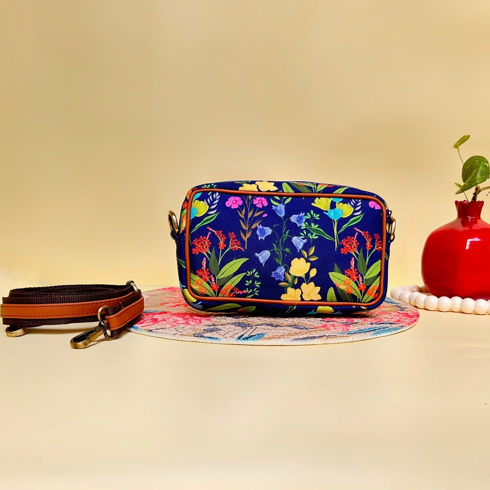 Embrace dreamy elegance with the Meadow Muse Sling. Featuring a meadow-inspired floral print, structured design, and vintage fittings, this lightweight bag keeps your essentials close while adding soft, poetic charm to any outing.