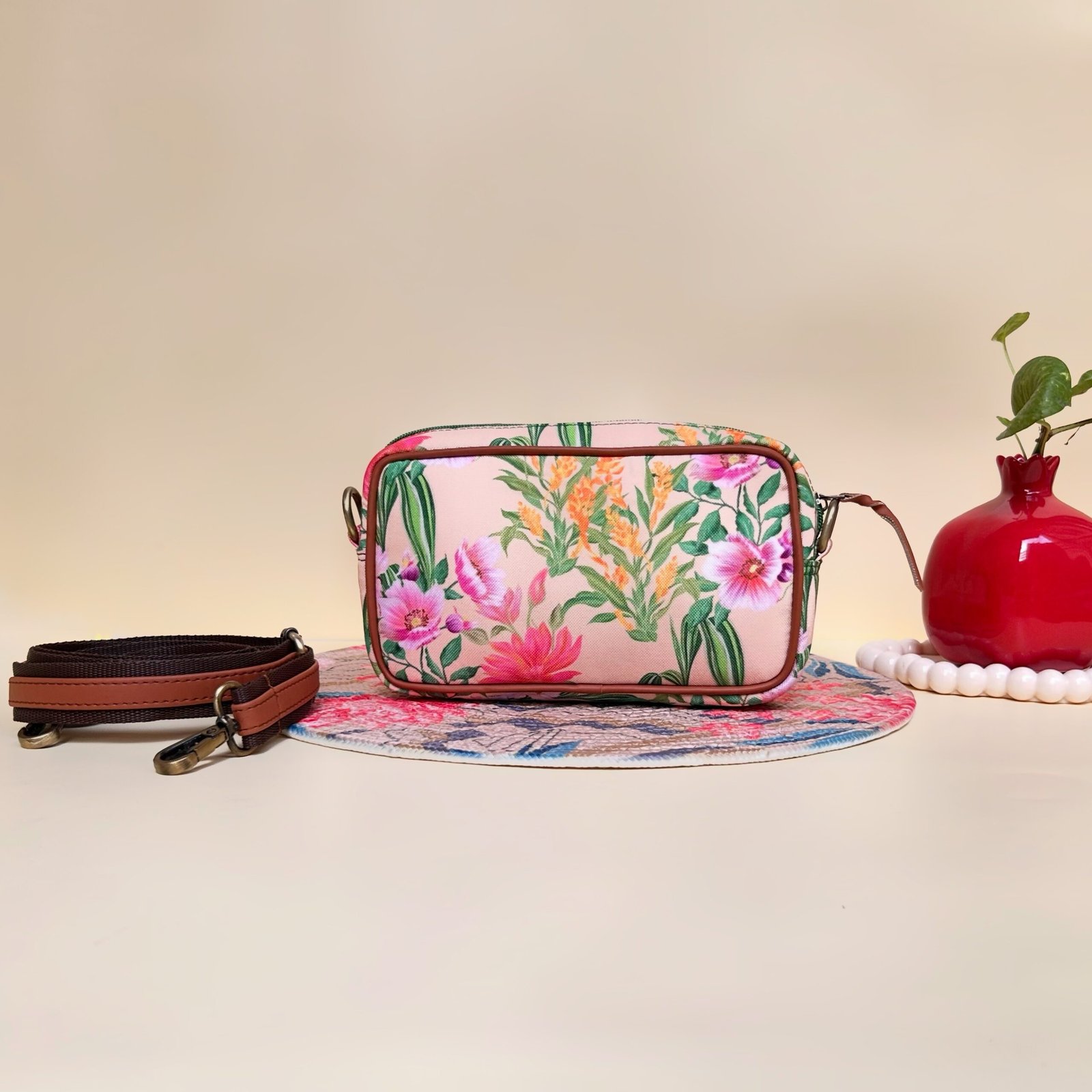 Thoughtfully designed for both function and style, this sling bag offers a lightweight structure with ample space for essentials. The adjustable strap ensures versatility, while the radiant design makes it a true mood-lifter.
